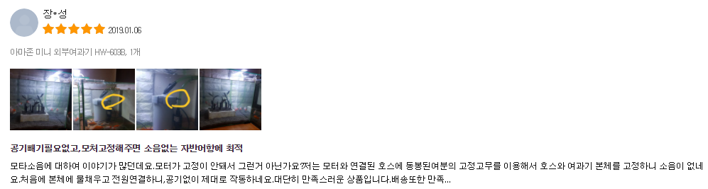 하지만! 아마존 미니 외부 여과기는 여과력도 훌륭하며 비용까지 착하다고 합니다 :D