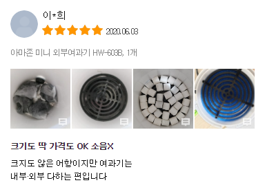 또한, 기존 제품 및 타제품에 비교했을 때 소음이 현저히 적다는 걸 리뷰에서 볼 수 있었습니다.